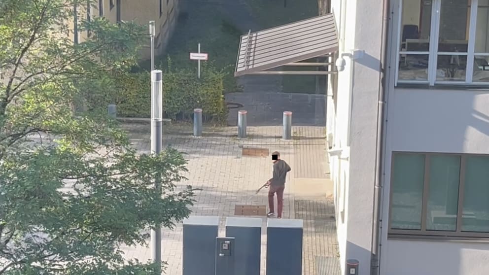Videos zeigen, wie der Schütze vor der Polizei flüchtet. Immer wieder dreht er sich um und schaut nach hinten. Als die schwer bewaffneten Beamten ihn aufspüren, flüchtet er auf einen Grünstreifen hinter einem Haus.