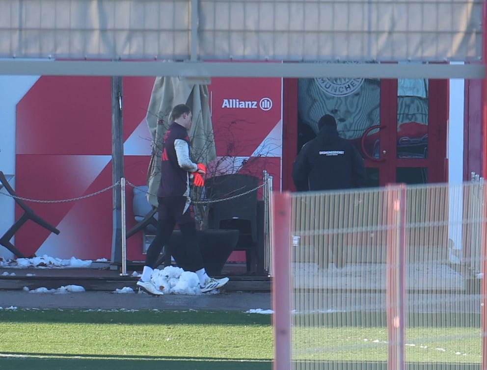 Zum Mannschaftstraining des deutschen Rekordmeisters kam er wie gewohnt mit den anderen Keepern schon früher raus als die Feldspieler.