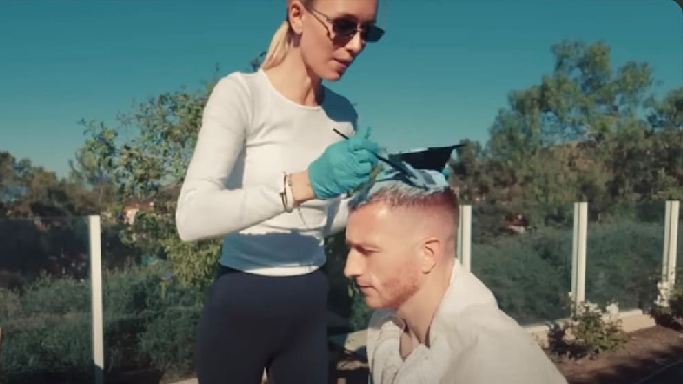 In ihrem aktuellen Video färbt sie dem Ex-BVB-Star die Haare – blond natürlich. Ganz so harmonisch läuft das Unterfangen aber nicht.